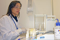 Depois de estagiar em saúde pública municipal e no laboratório de toxicologia do Instituto de Criminalística da Polícia Científica de Santos, Tábitha Cristina Mendes de França, do 8º semestre do curso de Farmácia, comemora o seu ingresso, neste ano, na indústria farmacêutica. Ela faz estágio na Libbs Farmacêutica, realizando testes de estabilidade físicos e químicos em medicamentos para o registro na Anvisa ou naqueles que já estão no mercado, mas mudaram algo na formulação ou embalagem, e precisam de um novo registro.
