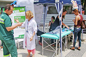 Alunas do curso de Nutrição participaram da ação de conscientização sobre a importância de uma alimentação saudável, na Praça Mauá, em Santos, na sexta-feira (16). O evento, organizado pelo Conselho Municipal de Segurança Alimentar e Nutricional de Santos, foi comemorativo pelo Dia Mundial da Saúde.