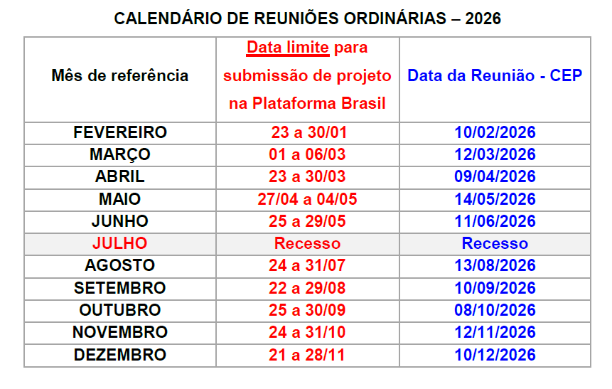 O credenciamento do CEP junto à Comissão Nacional de Ética em Pesquisa (Conep) se deu em 28/06/2005, e sua última renovação foi em 8/03/2022.