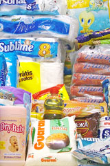 básicas, pacotes de feijão, caixas de leite em pó, em prol da