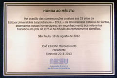 Placa de Honra ao Mérito entregue para Editora Leopoldianum
