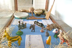 brasileiro. Estão expostos instrumentos musicais, brinquedos,