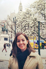 da satisfação em participar de um intercâmbio internacional. Ela está