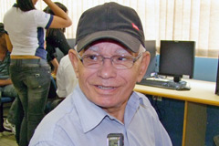 os alunos colocam em prática o aprendizado. Aposentado, Antonio Almeida