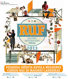 sua segunda edição, o Ranking Universitário Folha (RUF), publicado ontem, no Jornal Folha de S. Paulo, classifica a UNISANTOS
