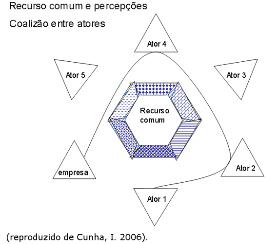 A imagem acima representa a articulação de uma coalizão pró Sustentabilidade em escala regional, na qual torna-se possível pensar, a nosso ver, com a participação da empresa, uma vez que a mesma repense sua estratégia de gestão de forma a redesenhar suas alianças com os diferentes atores.