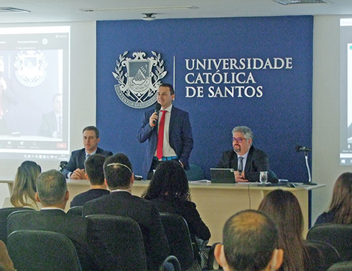 Participaram da mesa de discussão os professores doutores Olavo de Oliveira Bittencourt Neto, do Programa de Pós-Graduação Stricto Sensu em Direito e da Pós-Graduação Lato Sensu em Direito e Política Espacial da UNISANTOS,  membro do International Institute of Space Law (IISL), principal organização não-governamental internacional da área, e Daniel Freire e Almeida, coordenador do curso de Pós-Graduação Lato Sensu em Direito e Política Espacial. Também participou da mesa o procurador federal da Agencia Espacial Brasileira Ian Grosner.