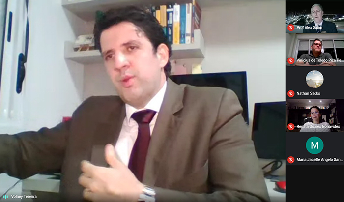 Juiz de Direito no Estado de São Paulo, o professor Vinícius de Toledo Piza Peluso explicou mais sobre o processo para se desenvolver na carreira da magistratura e os desafios encontrados ao longo desse processo. O mestre em Direito Penal comentou que a carreira de juiz traz um poder para a pessoa, mas que acima de tudo, ela proporciona uma satisfação pessoal. “Não se pode perder a essência e achar que o magistrado é poderoso e pode tudo. Antes de julgar, você deve abraçar e amar essa profissão”.