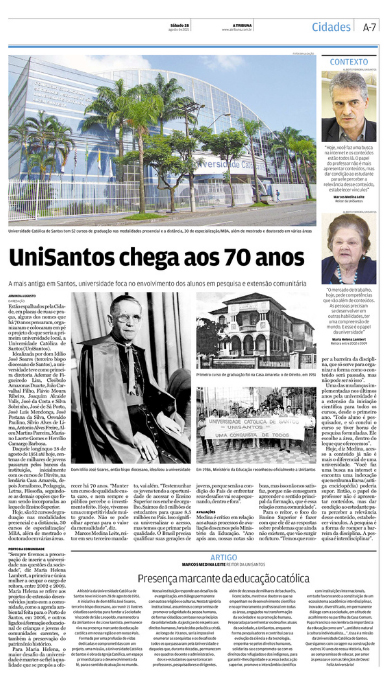 Confira a matéria UNISANTOS chega aos 70 anos.