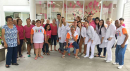 O curso de Enfermagem da UNISANTOS tem realizado uma série de ações por conta do Outubro Rosa, mês dedicado à prevenção de câncer de mama e de colo de útero. Palestras, orientações a campanhas estão sendo realizadas em institutos, instituições de ensino e policlínicas. Alunos de todos os semestres e docentes também já promoveram, inclusive, eventos para resgatar a autoestima das mulheres acometidas pela doença. A Universidade também aderiu à campanha e tem feito ações preventivas junto aos funcionários docentes e administrativos, além de iluminar com a cor rosa a fachada dos prédios dos campi Boqueirão e Dom Idílio José Soares.