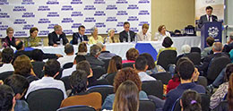 Entre as autoridades presentes na cerimônia, a presidente da Fundação Arquivo e Memória de Santos, Vera Rafaelli, representando o prefeito Paulo Alexandre Barbosa, resumiu a importância do curso de História. “Tudo que nós temos é oriundo da UNISANTOS, na verdade a Cidade é oriunda da UNISANTOS”, disse a chefe da instituição que trabalha no gerenciamento dos arquivos públicos da Prefeitura de Santos e memória documental e iconográfica de Santos. Formada em Psicologia pela Universidade, ela ressaltou que estava duplamente feliz, enquanto ex-aluna e por contar com os estagiários do curso de História. “Em nome do prefeito, quero cumprimentar toda a comunidade da UNISANTOS. Fico emocionada de estar nesta homenagem a essas professoras”.