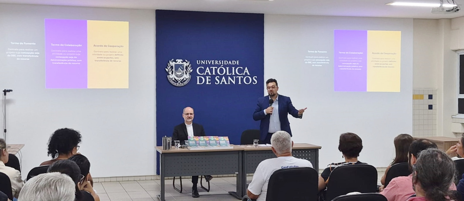 O encontro contou com a presença do sociólogo Eduardo Brasileiro de Carvalho, diretor de Parcerias com a Sociedade Civil da Secretaria-Geral da Presidência da República, do chanceler da UNISANTOS, o bispo diocesano de Santos, Dom Joaquim Giovani Mol Guimarães, do reitor da UNISANTOS, professor doutor Cléber Ferrão Corrêa, e das pró-reitoras, professora doutora Mariangela Mendes Lomba Pinho (Administrativa) e Rita de Cássia Zaher Rosa Paul (Graduação).