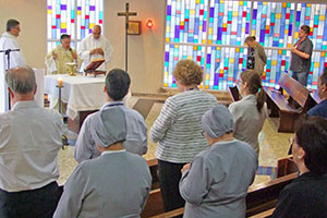 CELEBRAÇÃO EUCARÍSTICA – Presidida pelo bispo diocesano Dom Tarcísio Scaramussa, a celebração eucarística que integrou a programa do evento ocorreu na Capela São José, com a participação dos representantes das escolas católicas e da comunidade acadêmica da UNISANTOS.