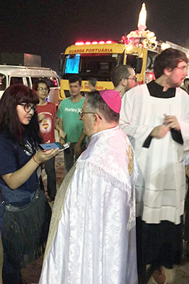 A estudante Bruna Letícia dos Passos Silva disse que ficou animada quando surgiu a proposta de fazer a cobertura do evento. Ao se voluntariar para fazer a entrevista com o chanceler da UNISANTOS, o bispo diocesano de Santos, Dom Tarcísio Scaramussa, contou que estabeleceu um desafio. “Foi uma experiência única, que carregarei por toda a minha vida pessoal e profissional. Percebi que ser jornalista é ter determinação para ir atrás da sua matéria mesmo com calos nos pés ou a garganta seca, mesmo querendo chorar ao ver a imagem peregrina. Persistir, persistir!”.