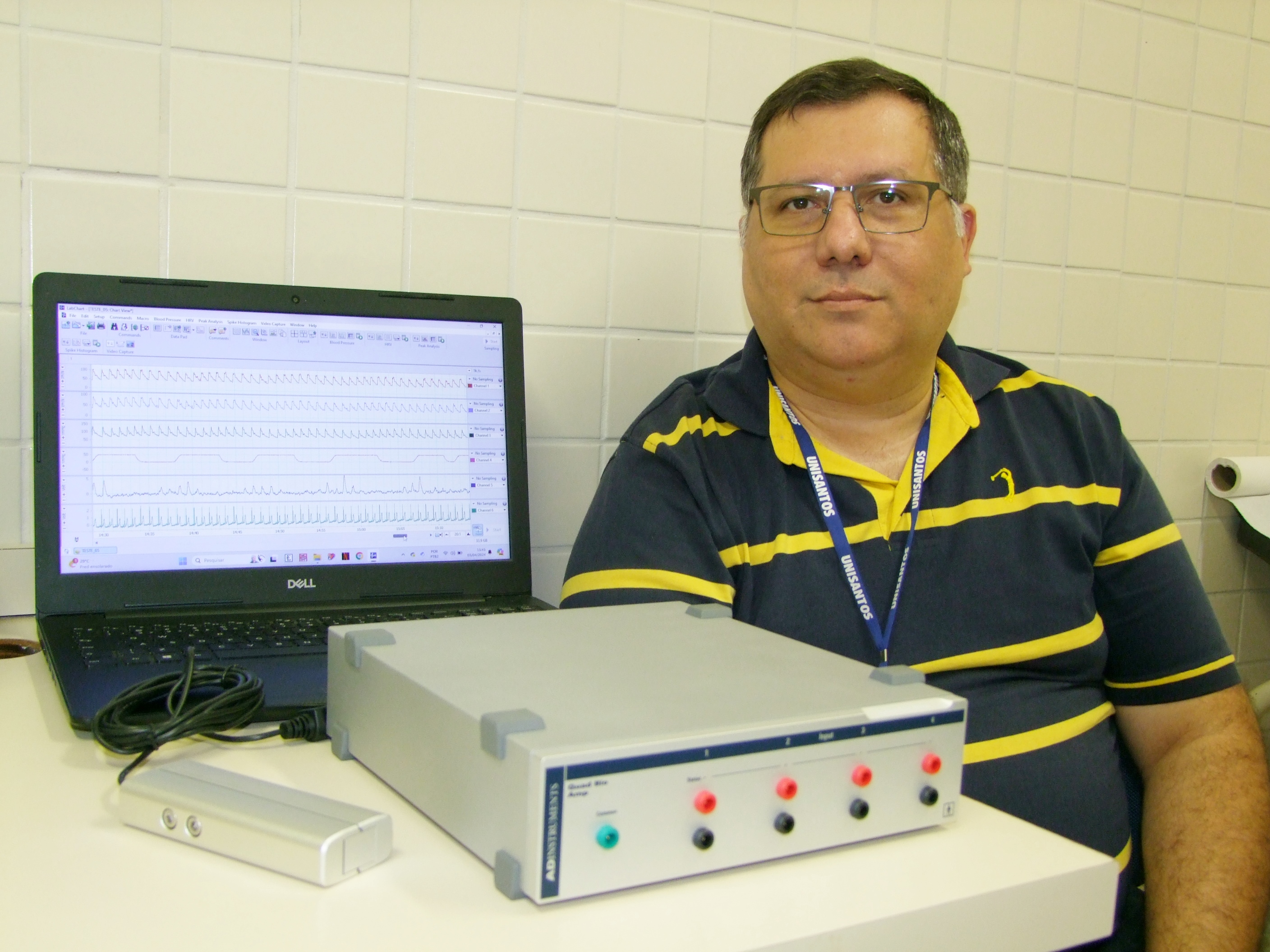 O Laboratório de Psicofisiologia da UNISANTOS acaba de receber um amplificador de eletrofisiologia, com quatro canais para eletrocardiograma e eletroencefalograma. Este é o primeiro módulo de equipamentos que integram o Projeto “Prevenção do Acidente Vascular Cerebral por meio da estimulação não invasiva do nervo vago: um ensaio piloto randomizado controlado”, do professor doutor Edgar Toschi Dias, do Programa de Mestrado Profissional em Psicologia, Desenvolvimento e Políticas Públicas. A inciativa tem apoio da Fundação de Amparo à Pesquisa do Estado de São Paulo – FAPESP.