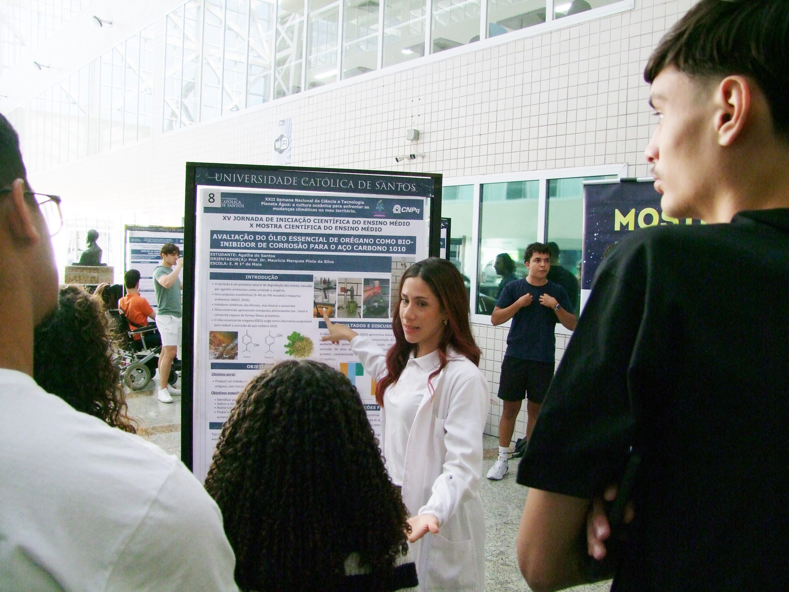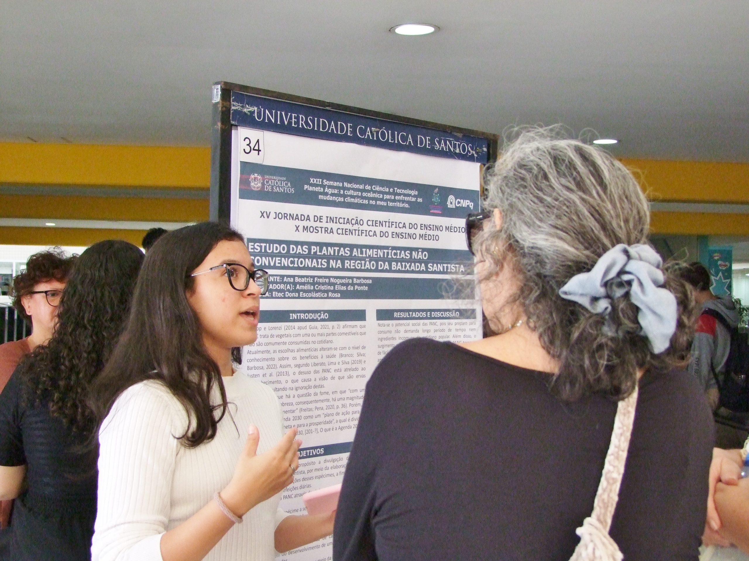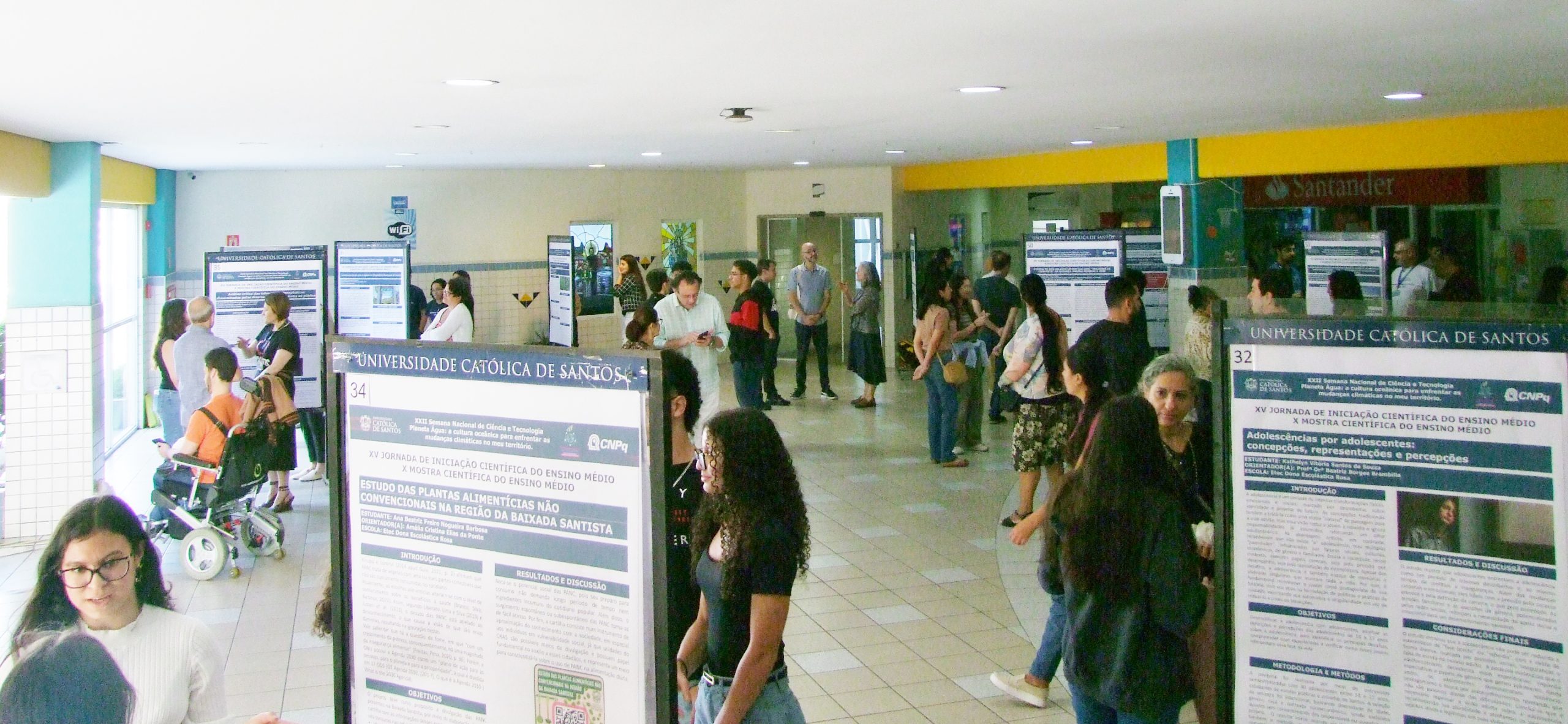 Mais de 100 trabalhos foram apresentados durante a XX Jornada de Iniciação Científica e Iniciação em Desenvolvimento Tecnológico e Inovação, a XV Jornada de Iniciação Científica do Ensino Médio e a X Mostra de Iniciação Científica do Ensino Médio. Os eventos, nos dias 15 e 22 de outubro, integraram a XV Semana de Ciência, Tecnologia e Inovação da UNISANTOS e reuniram a produção científica de estudantes-pesquisadores, bolsistas da instituição e do CNPq.