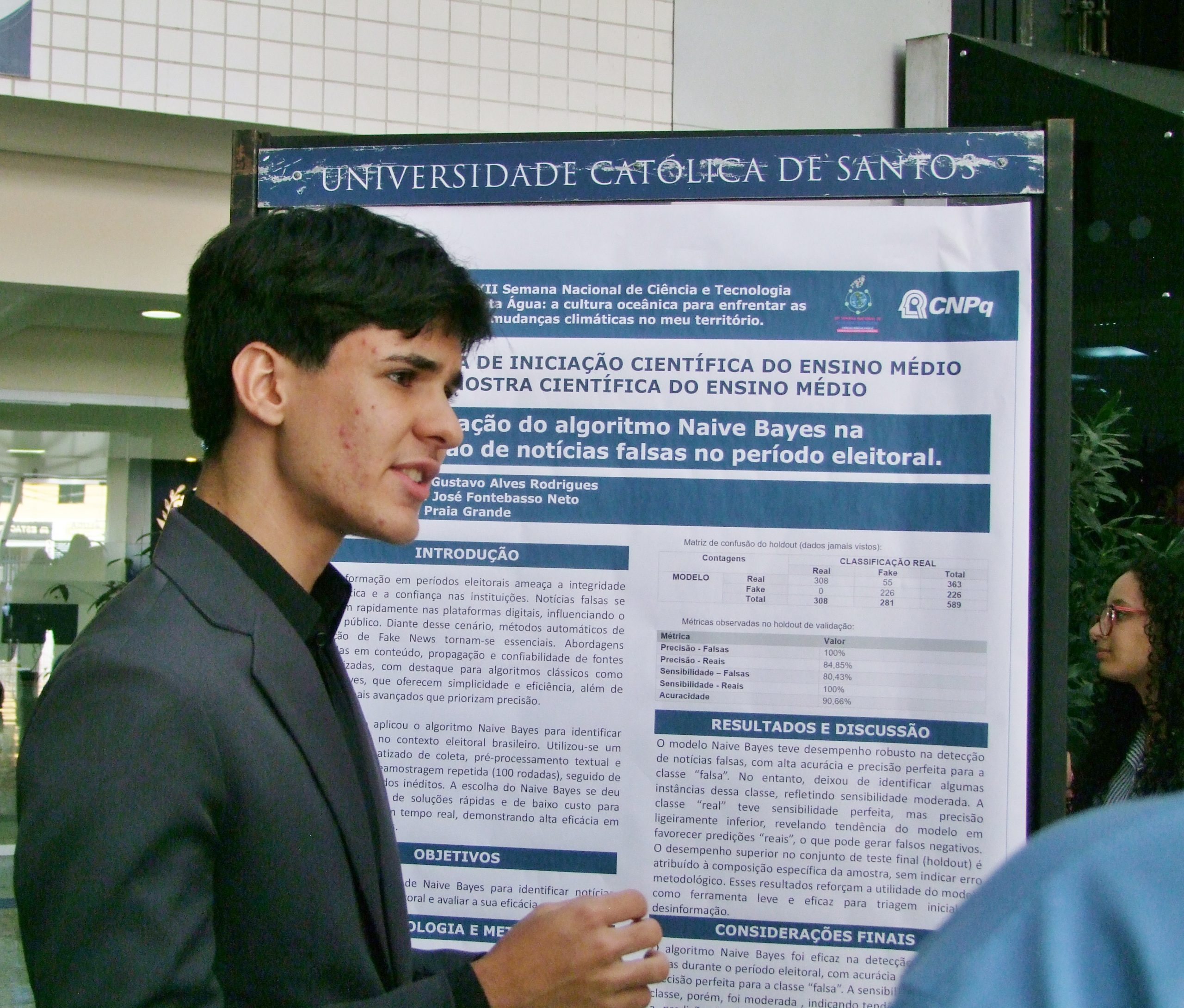 “Computação crítica consciente – inteligência artificial”. Esse foi o título do projeto do estudante do 3° ano do ensino médio da ETEC de Praia Grande, Luís Fernando Gimenez Goulart, de 18 anos. Ele abordou como a inteligência artificial pode manipular os ideais de uma pessoa. Morador de Praia Grande, o jovem, orientado pelo professor doutor Thiago Ferrauche, explicou que não gostava de pesquisar, mas que seu trabalho fez com que saísse da própria bolha, explorando novas áreas do conhecimento.