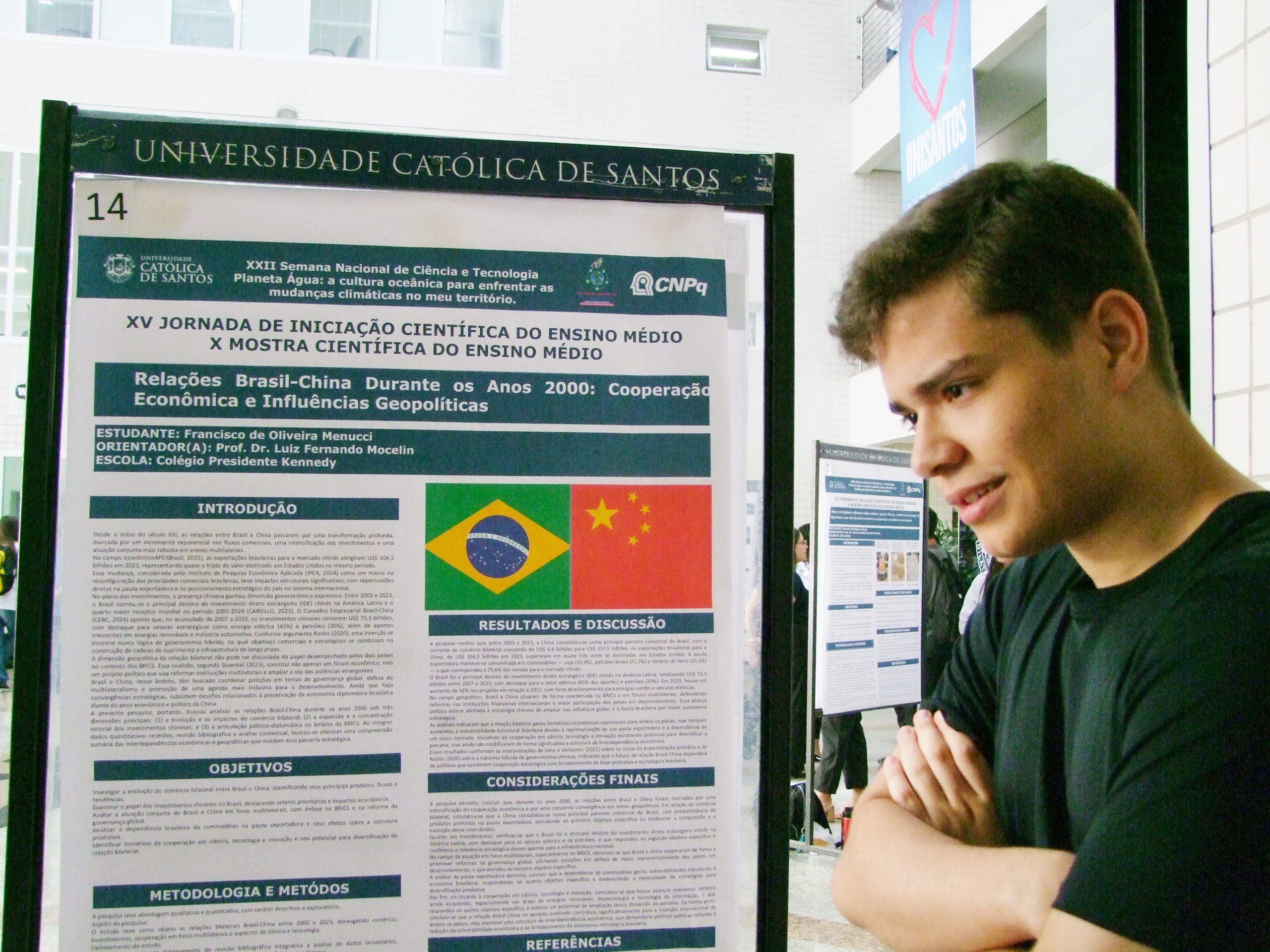Com o tema “Relações Brasil-China durante os anos 2000: cooperação econômica e influências geopolíticas”, Francisco, que foi orientado pelo professor mestre Luis Fernando Mocelin Sperancete, analisou as relações comerciais entre os dois países, e examinou os investimentos chineses e a cooperação entre ambos nos meios científico, tecnológico e inovador. De acordo com ele, foi possível ver que a China, entre 2003 e 2023, se tornou o principal parceiro do Brasil e que os negócios renderam frutos para as duas nações.