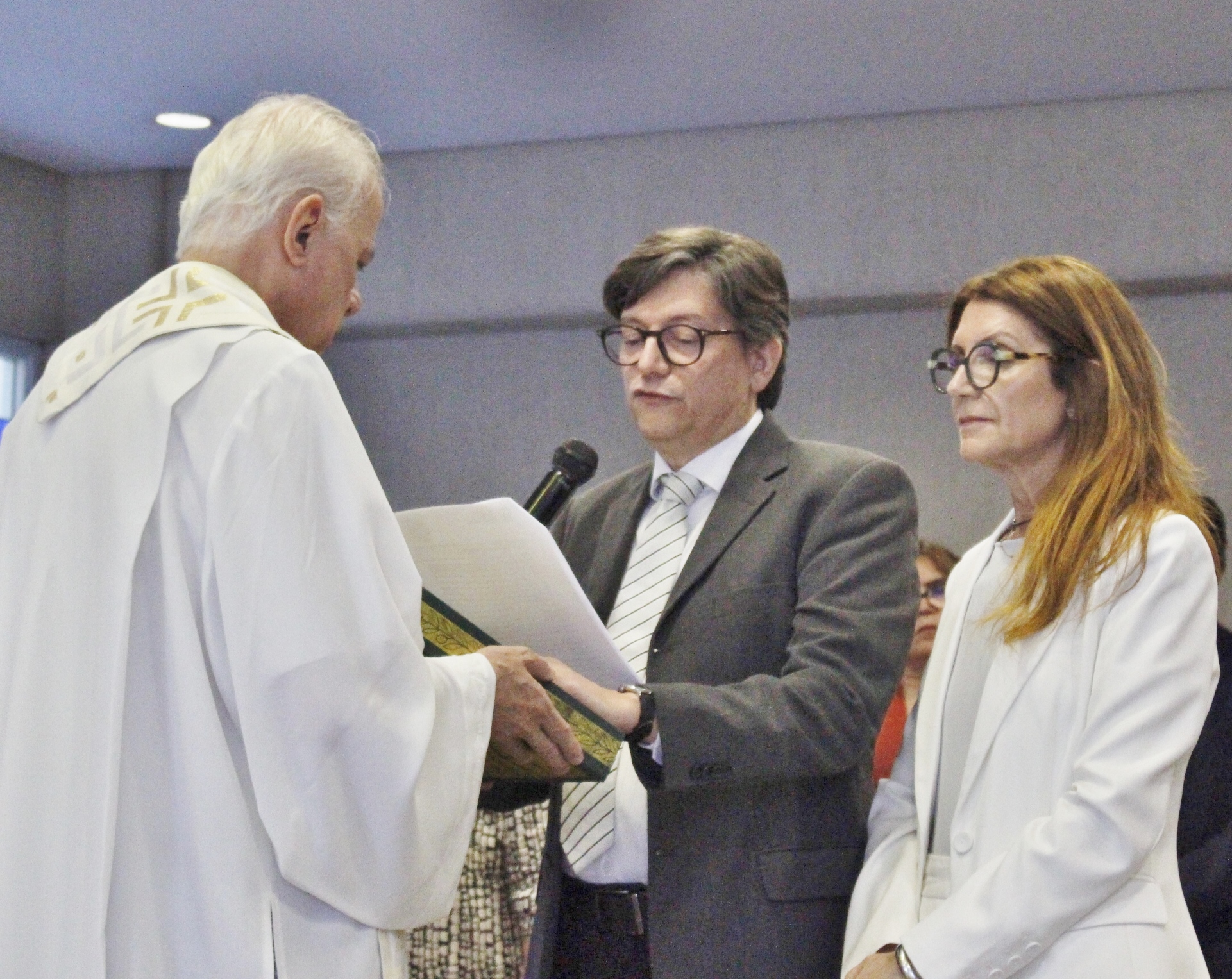 “Assumir esta função não é apenas ocupar um cargo administrativo, é acolher uma missão confiada pela Igreja e pela sociedade. Missão que exige humildade, coragem, discernimento e, sobretudo, amor à educação e às pessoas que formam esta comunidade acadêmica”. Assim, o novo reitor Cléber Ferrão iniciou a sua fala sintetizando as responsabilidades que lhe são conferidas. Ao referir-se sobre o cenário atual de transformações globais, tecnológicas, socias, econômicas, culturais e ambientais, lembrou que é preciso agir com lucidez e esperança para enfrentar os desafios que marcam as universidades no Brasil e no mundo.