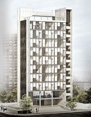 Com uma proposta de valorização de áreas comuns, o projeto concebido para o bairro do Boqueirão, em Santos, foi elaborado para que estudantes possam vir a habitar este Edifício. Analisando diversos aspectos como localização, estruturas e até a parte histórica da arquitetura residencial de Santos, o grupo desenvolveu espaços que permitem maior flexibilidade de arranjos para ocupação de um ou mais estudantes.