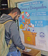 campanha-doacao-livrosCom o objetivo de mobilizar a comunidade acadêmica a contribuir com o programa de extensão universitária desenvolvido pela UNISANTOS junto à creche-escola de aplicação “Ancilla Domini” (Rua Padre Visconte, 12), a UNISANTOS promove, até o dia 30 de agosto, a Campanha de Doação de Livros e Brinquedos. As doações podem ser feitas nos campi Dom Idílio Jose Soares (Avenida Conselheiro Nébias, 300) e Boqueirão (Avenida Conselheiro Nébias, 584).