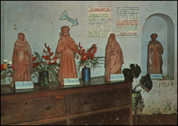 As imagens religiosas (de porte médio), ocas e com abertura nas costas, tinham por finalidade, devido à leveza, facilitar o transporte durante as procissões e servir de recipientes para o contrabando. Quatro exemplos dessas santas ferramentas de contravenção, podem ser encontradas no Convento de Nossa Senhora da Conceição, em Itanhaém, porém, para frustração do visitante, o seu “close” mais interessante só é possível ver através de cartões-postais disponíveis para venda no local. Em alguns casos, as imagens podem falar mais alto do que palavras. Abaixo, a fotografia da atual exposição de Santa Isabel, São Francisco, Santa Clara e São Domingos e os postais mencionados: